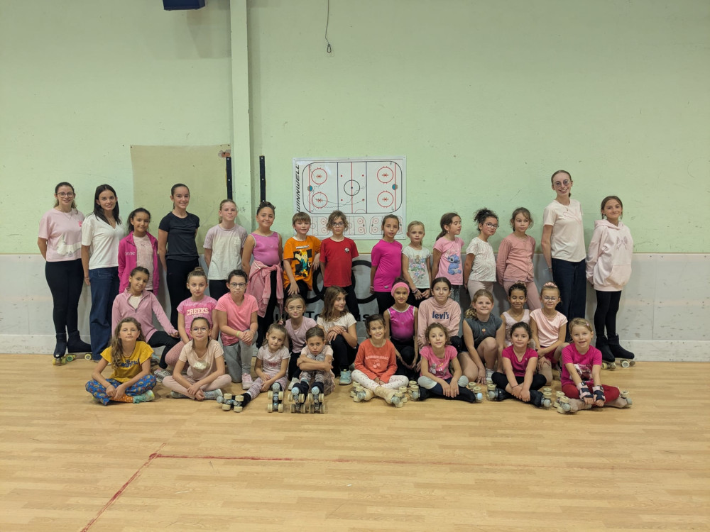 Nos deux groupes « école » (32 patineurs âgés de 4 à 14 ans) s’entrainent une fois par semaine les mardis et sont encadrés par Domitille, Chloé, Louise et Mathilde, toutes entraineurs bénévoles au club.