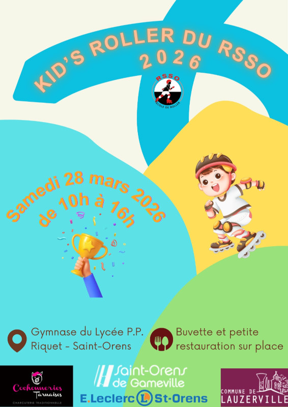 L'École de Roller du RSSO organise son traditionnel Kid’s Roller le samedi 28 mars 2026, de 10h à 16h, au gymnase du lycée Pierre-Paul Riquet à Saint-Orens.